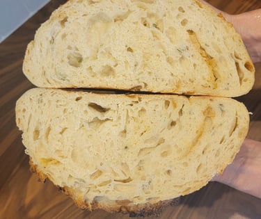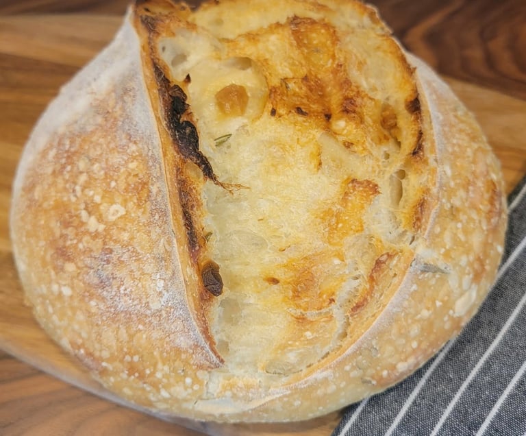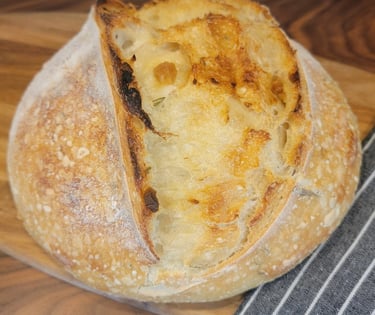 The addition of roasted garlic & rosemary to our classic sourdough boule is a savory treat. Perfect as a side for your favorite meal, with soup or makes a killer sandwich.